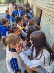 Los alumnos de ESO disfrutaron de una gymkana en el polideportivo, mientras que otros pintaron las caras  los más pequeños de Educación Infantil y Primaria y jugaron con ellos/as a juegos como el balón prisionero.